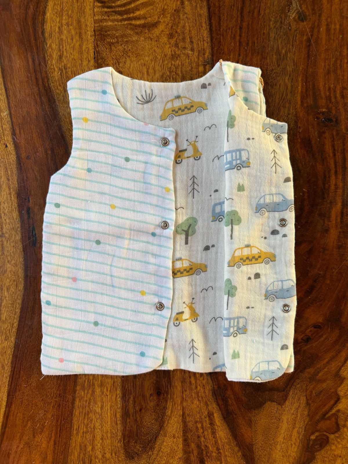 Double the style, double the comfort! Our Reversible Organic Muslin Cotton Jabla is made from 100% pure muslin cotton, ultra-soft and breathable for delicate baby skin. Lightweight and airy, it keeps your little one cozy while allowing easy movement.